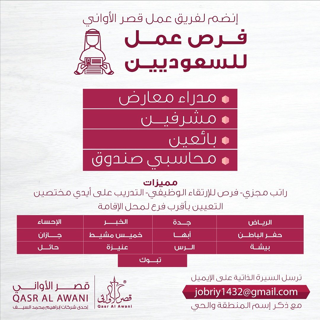 قصر الاواني وظائف في في حائل الاحساء الرياض بيشة ابها القصيم الخبر خميس مشيط