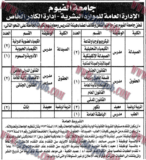 اعلان وظائف جامعة الفيوم منشور بالجمهورية 19 6 2018